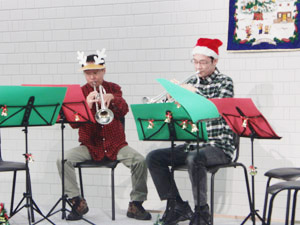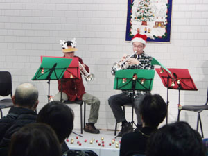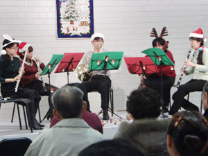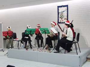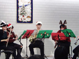 この日はクリスマスコンサートということで、みんなサンタさんやらトナカイさんの恰好で演奏しました☆
