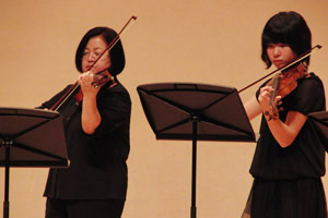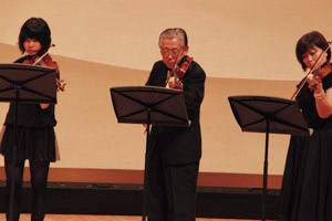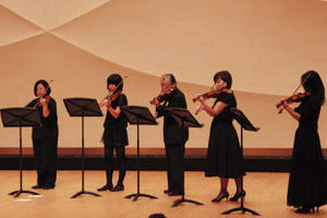 アルカスホールの大ホールでヴァイオリンアンサンブルと木管九重奏で出演してきました〜(^皿^)